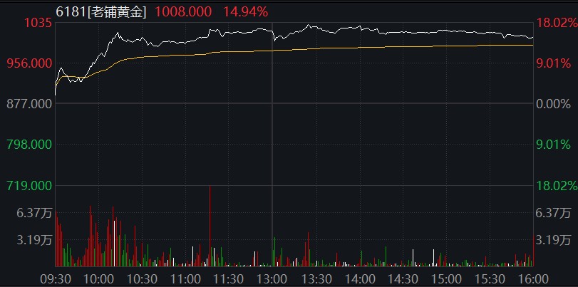 港股新消费概念股走强,截至收盘,老铺黄金涨 15%,股价突破 1000 港元,盘中最高触及 1035 港元/股。自 2024 年 6 月 28 日登陆港股以来,实际已较 40.5 港元的发行价累计上涨了约 25 倍。