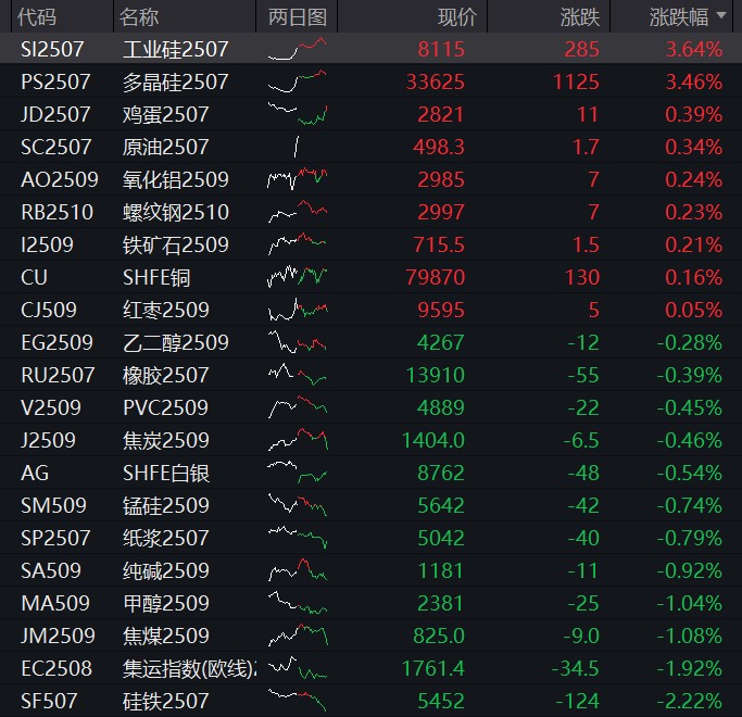 商品:国内商品期货分化,工业硅上涨,焦煤下跌。具体来看,多晶硅涨超 4%,工业硅涨近 3%,菜粕、对二甲苯涨超 1%,跌幅方面,集运欧线、玻璃、原油、焦煤、甲醇跌超 1%。