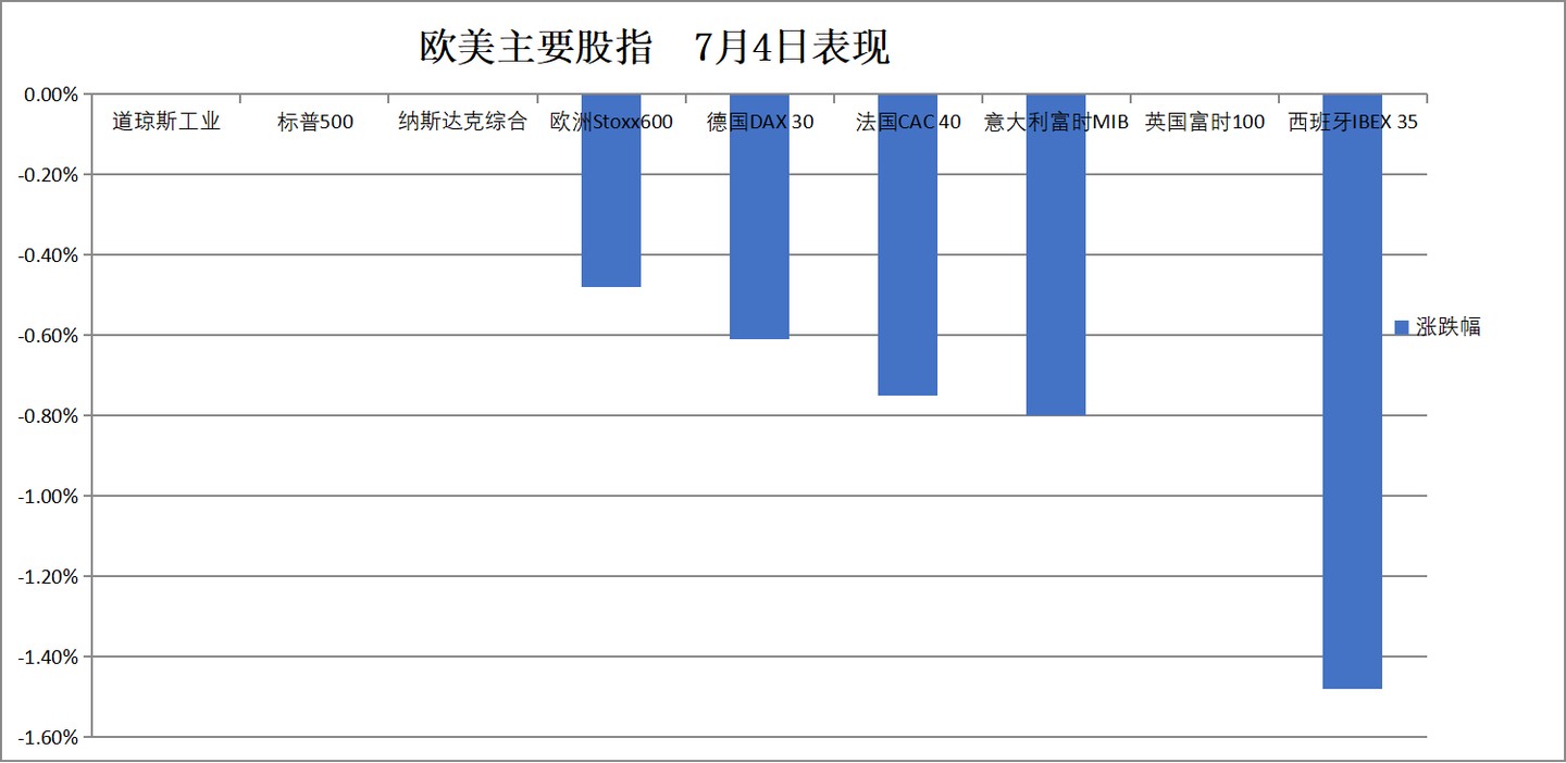 美股美债独立日休市,贸易冲突再升级,欧洲芯片股普跌、美油一度下跌 1.5%