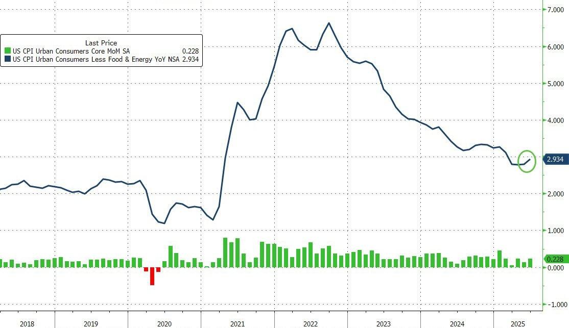 美国 6 月核心 CPI 同比上涨 2.9%,环比 0.2%,连续 5 个月低于预期!