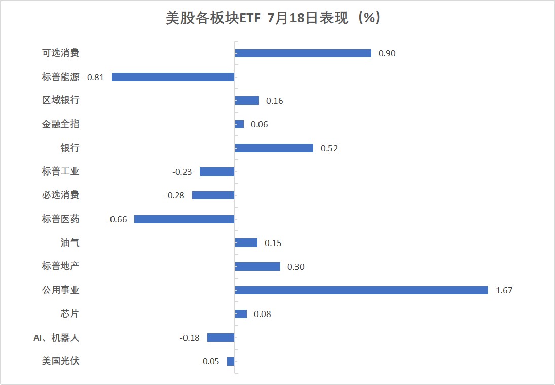 本周,能源业 ETF 跌 3.56%,生物科技指数 ETF 跌 1.41%,全球航空业 ETF 跌 0.16%,可选消费 ETF 涨 0.33%,银行业 ETF 涨 0.50%,区域银行 ETF 涨 0.60%,半导体 ETF 涨 0.98%,网络股指数 ETF 涨 1.70%,科技行业 ETF 涨 1.97%,全球科技股指数 ETF 涨 2.07%。
