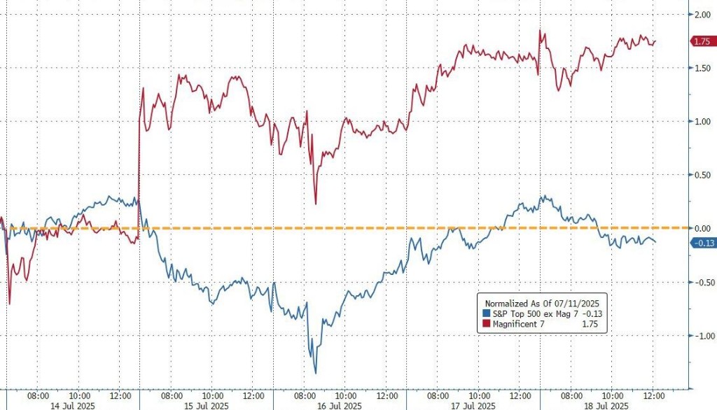 (科技七巨头本周跑赢剩余标普 493 只成分股)