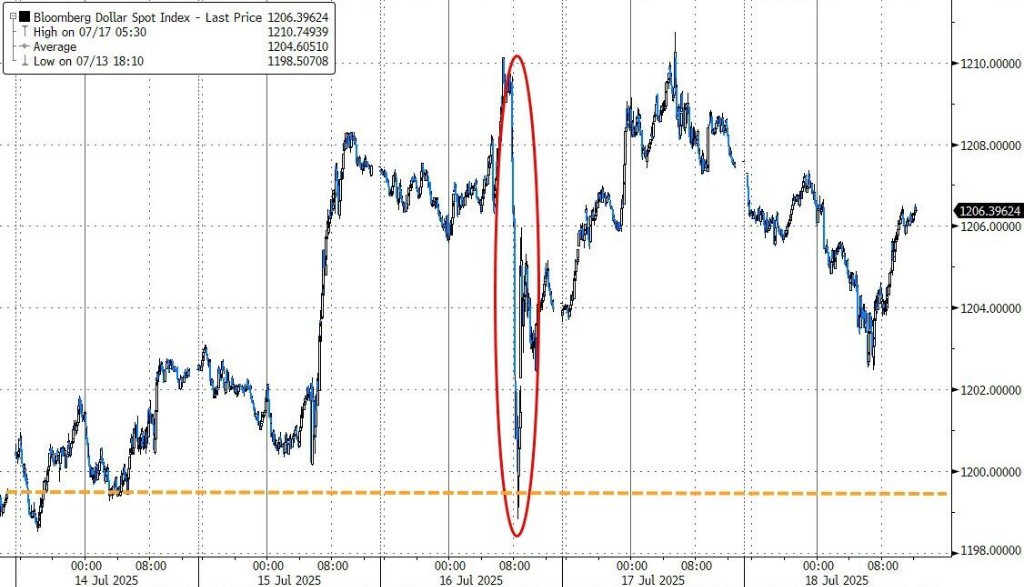 (彭博美元指数趋势,周三因鲍威尔离职传闻显著下跌)