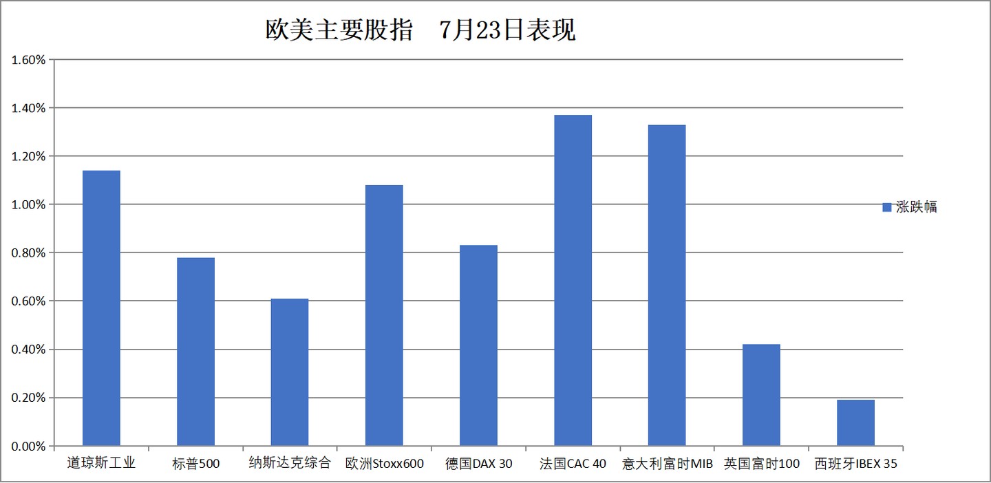 欧洲股市收涨将近 1.1%,德国股指收涨超 0.8%,意大利银行板块涨 2.4%,英国股指创历史新高。汽车板块涨超 3.7%,Stellantis 收涨超 9.1%,沃尔沃涨超 6.8%。
