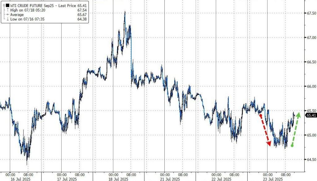 WTI 9 月原油期货收跌 0.06 美元,跌幅 0.09%,报 65.25 美元/桶。