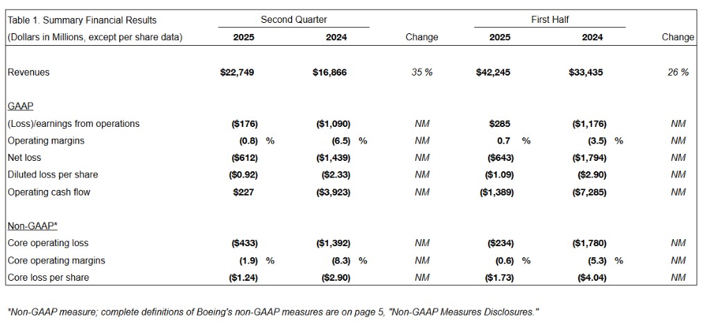 波音公司于 7 月 29 日公布了 2025 年第二季度财报: