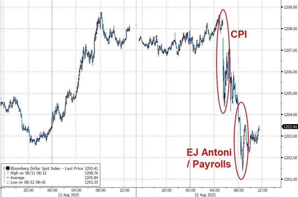 美股盘前,华尔街见闻撰文,7 月美国 CPI 数据整体温和,消除了美联储降息的一大障碍。交易员大幅提高了对美联储 9 月降息的预期,目前概率高达 95%。美元指数短线走低,较日内高点一度下挫 0.76%。美债收益率均下挫,随后普遍回升,但 2 年期仍收跌近 3 个基点。