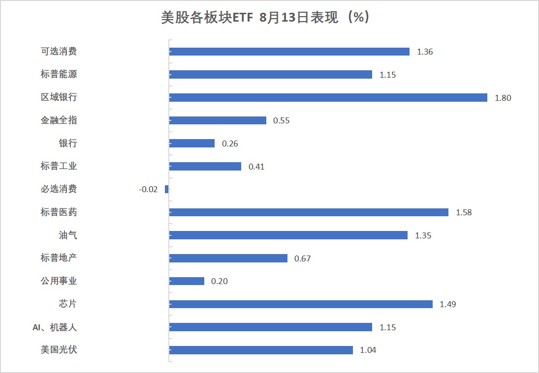 生物科技指数 ETF 收涨 2.31%,全球航空业 ETF、区域银行 ETF、银行业 ETF、医疗业 ETF、可选消费 ETF、能源业 ETF 涨 1.90%-1.16%。