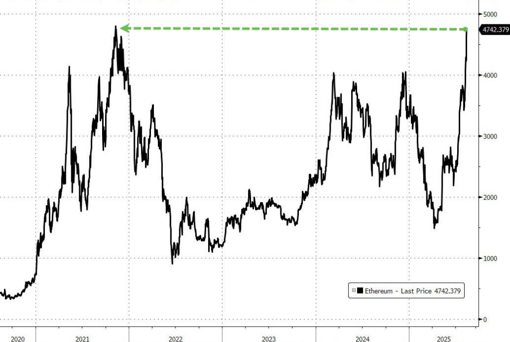 CME 以太币期货 DCR 主力合约涨 4.39%,报 4747 美元,全天持续震荡上行。
