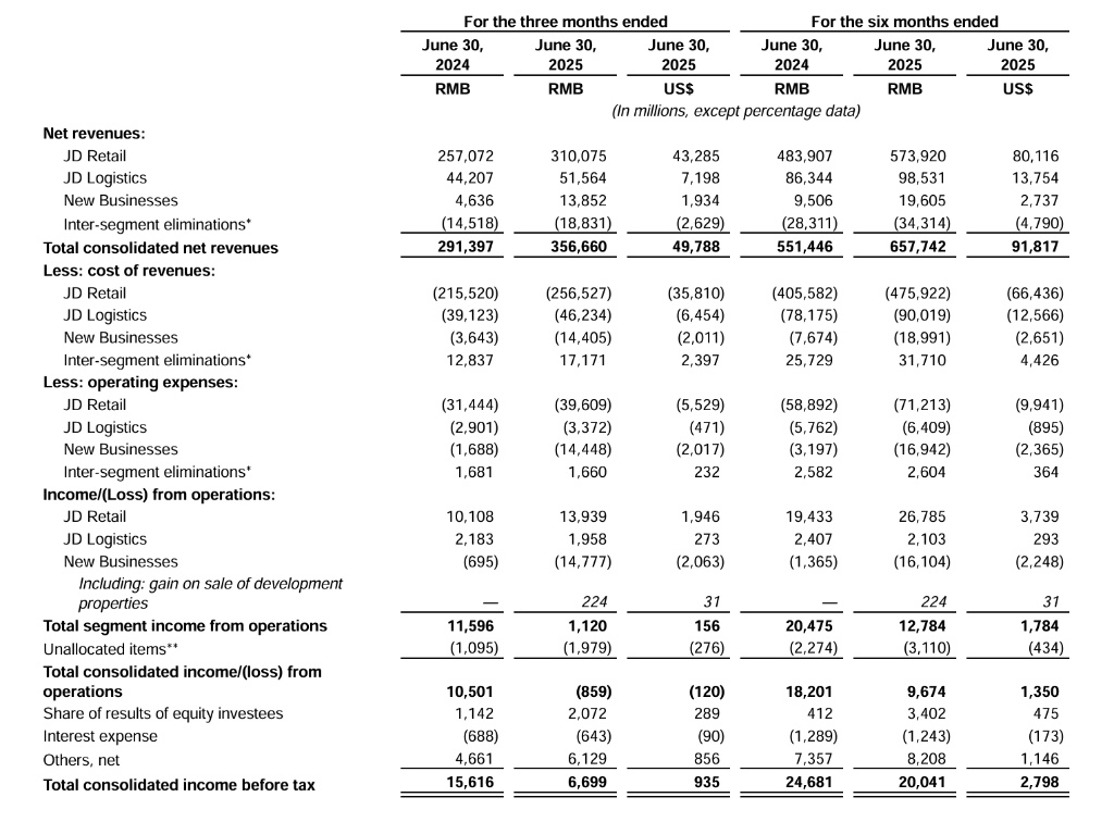 14 日,京东公布 Q2 财报: