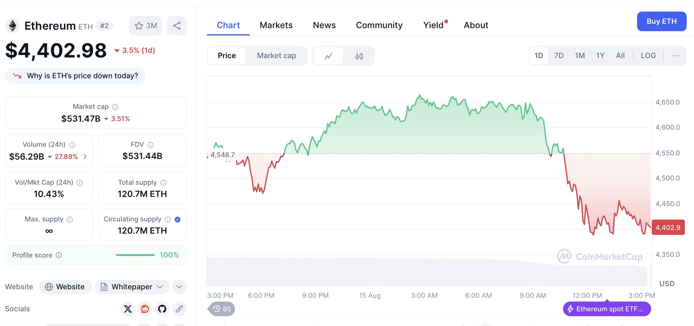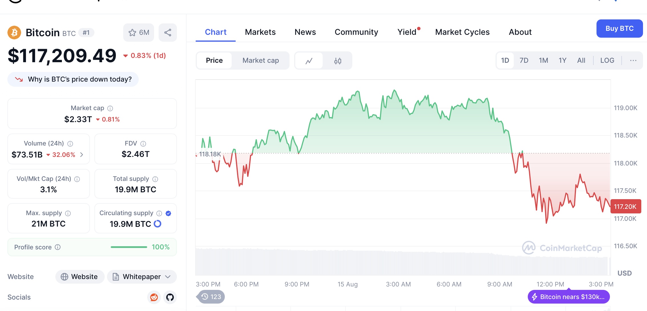 该消息并未对加密货币有所提振。比特币目前跌 0.8% 左右,位于 11.7 万美元附近。以太坊跌 3.5%,位于 4400 美元附近。