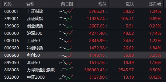 A 股:截至收盘,沪指涨 1.04%,深成指涨 0.89%,创业板指涨 0.23%。科创 50 指数涨 3.23%,创年内新高。