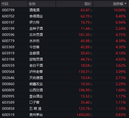 白酒股继续走强、汽车整车板块拉升