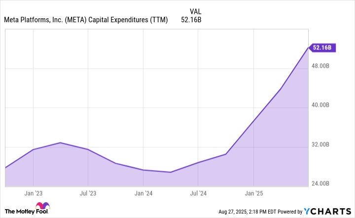 META 资本支出(TTM)数据来自 YCharts;TTM = 最近 12 个月。
