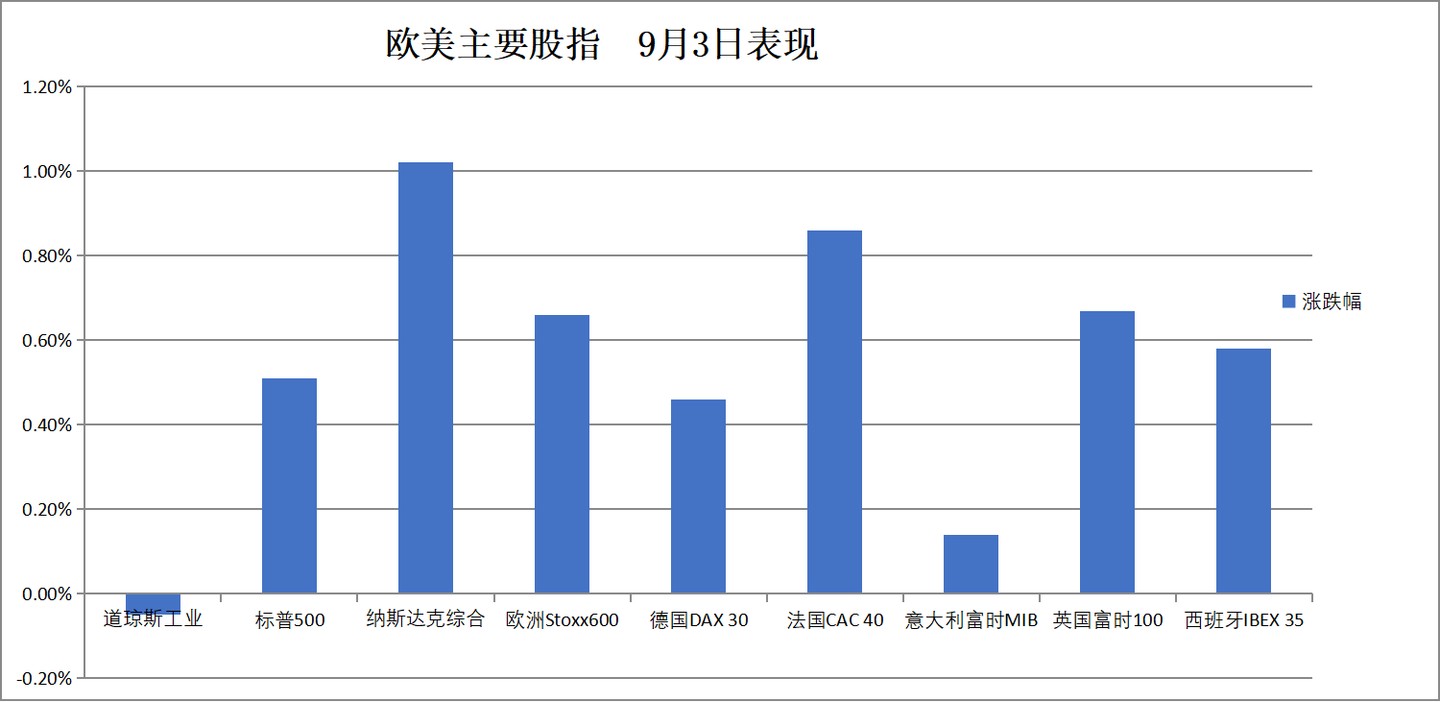 欧洲 STOXX 600 指数收涨 0.66%,报 546.78 点。