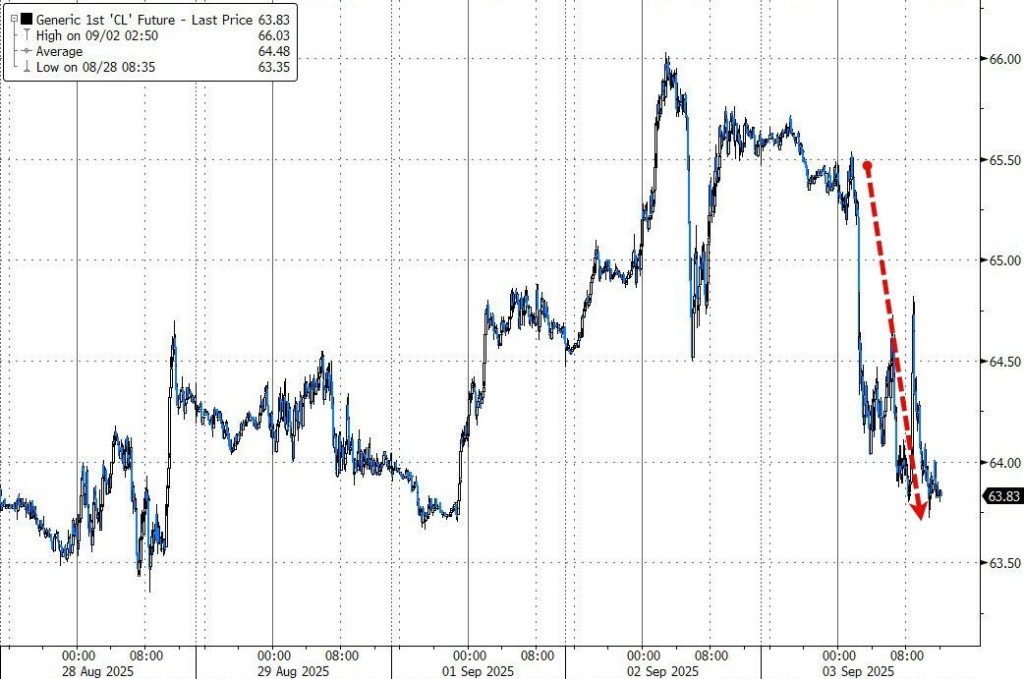 WTI 10 月原油期货收跌 1.62 美元,跌幅将近 2.5%,报 63.97 美元/桶。