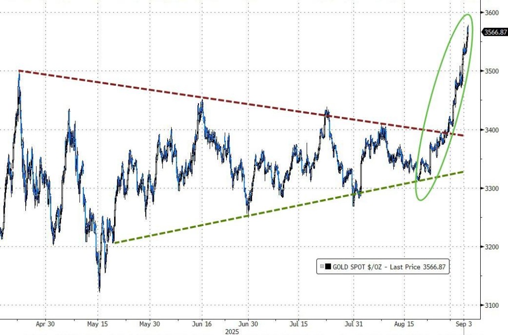 现货黄金涨约 0.8%,一度创历史新高并逼近 3580 美元。费城金银指数收涨 0.79%,报 257.07 点,连续第三个交易日创收盘历史新高。