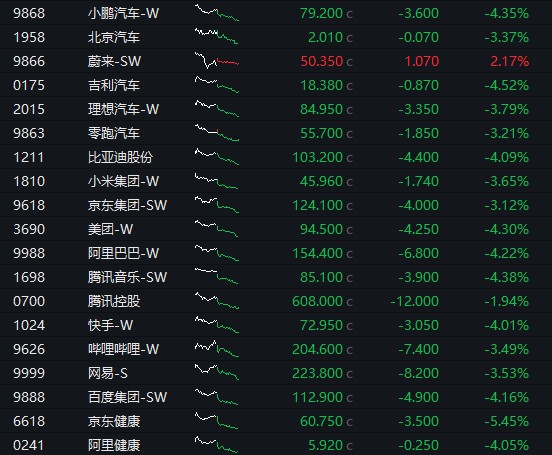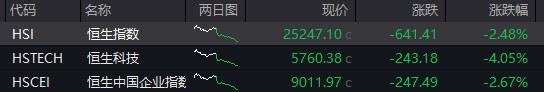 港股:恒指跌 2.48%,恒科指跌 4.05%,均创一个月新低。