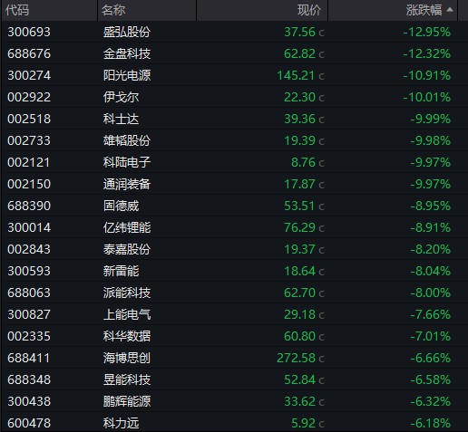 储能概念股中,盛弘股份、金盘科技、伊戈尔跌超 10%。