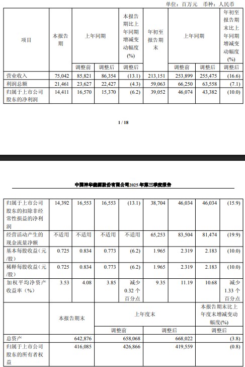 中国神华 Q3 净利润降 6.2%,煤价下行压力持续凸显 | 财报见闻