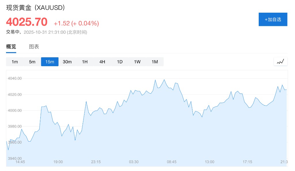 - 现货黄金涨 0.04%,报 4028 美元/盎司