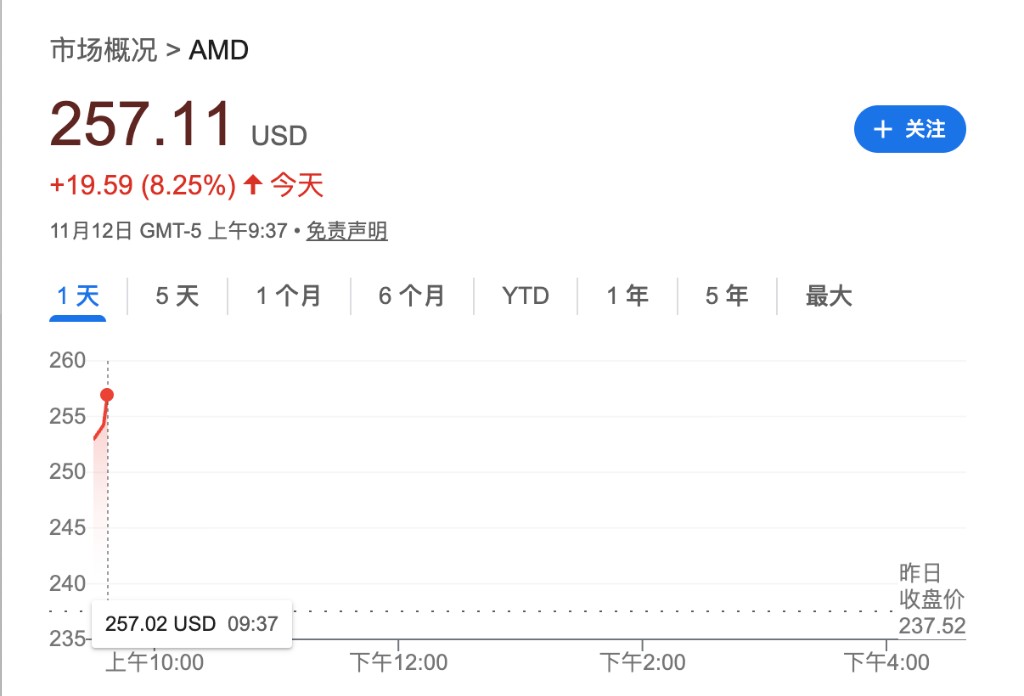 AMD 美股盘初涨 8%,CEO 苏姿丰预计到 2030 年 AI 数据中心市场规模料突破 1 万亿美元,AMD 营收年增或超 35%。