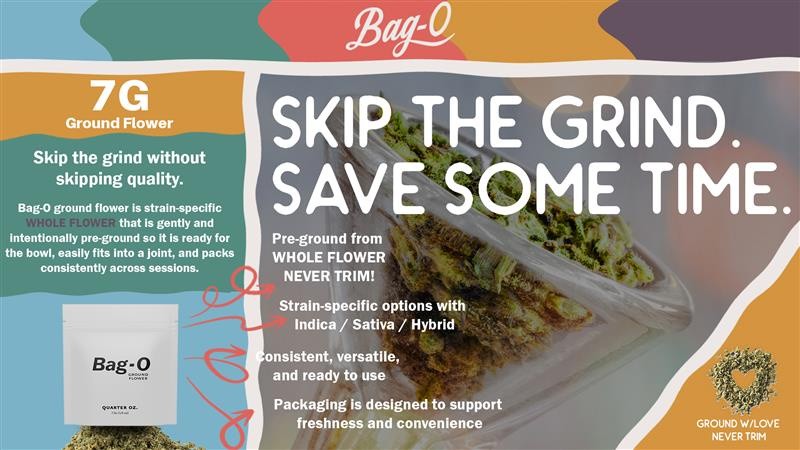 Bag-O 7 克预磨干花采用特定品种的完整花朵,经过轻柔且有意的预磨,以保留其自然香气、效力和萜烯特征。最终结果是一个即用选项,消除了额外准备的需要,同时保持质量和一致性。这种多功能格式无缝适用于蒸发、卷烟或传统消费,使其轻松融入日常生活。