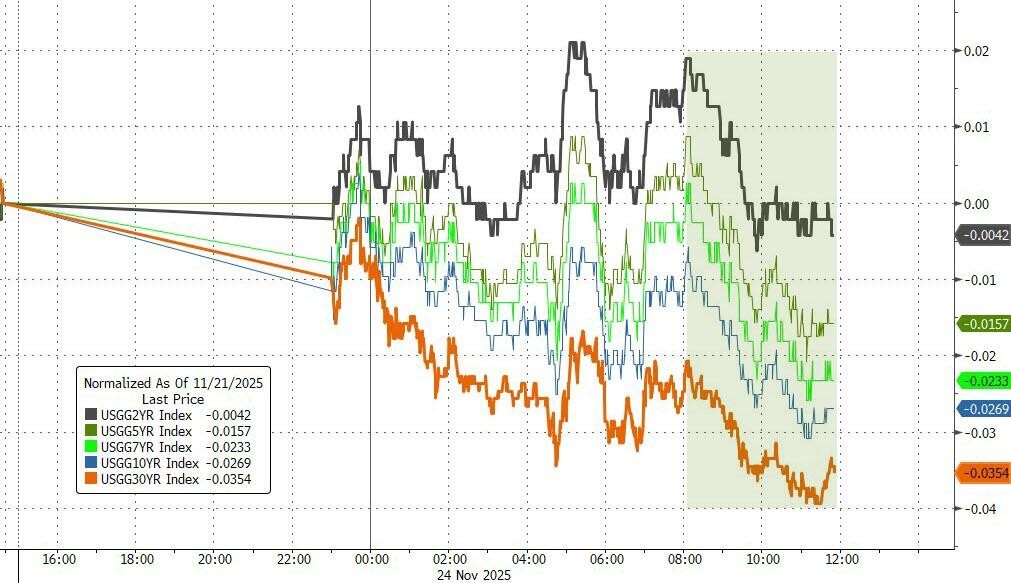 美债收益率全面下跌。30 年期德债收益率跌约 2 个基点。