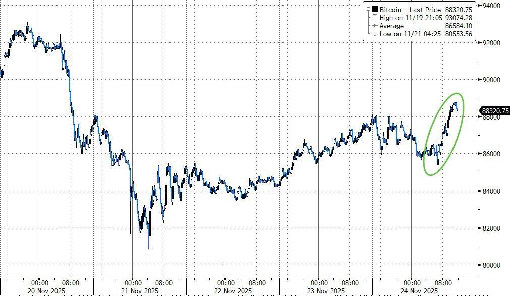 美联储降息概率重回 80%,美元指数未出现明显下挫。加密货币大涨,比特币一度逼近 8.9 万美元关口,以太坊大涨超 7%。