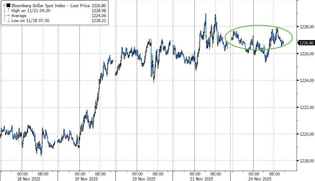 彭博美元指数涨 0.02%,报 1226.64 点,日内交投区间为 1225.27-1227.98 点。