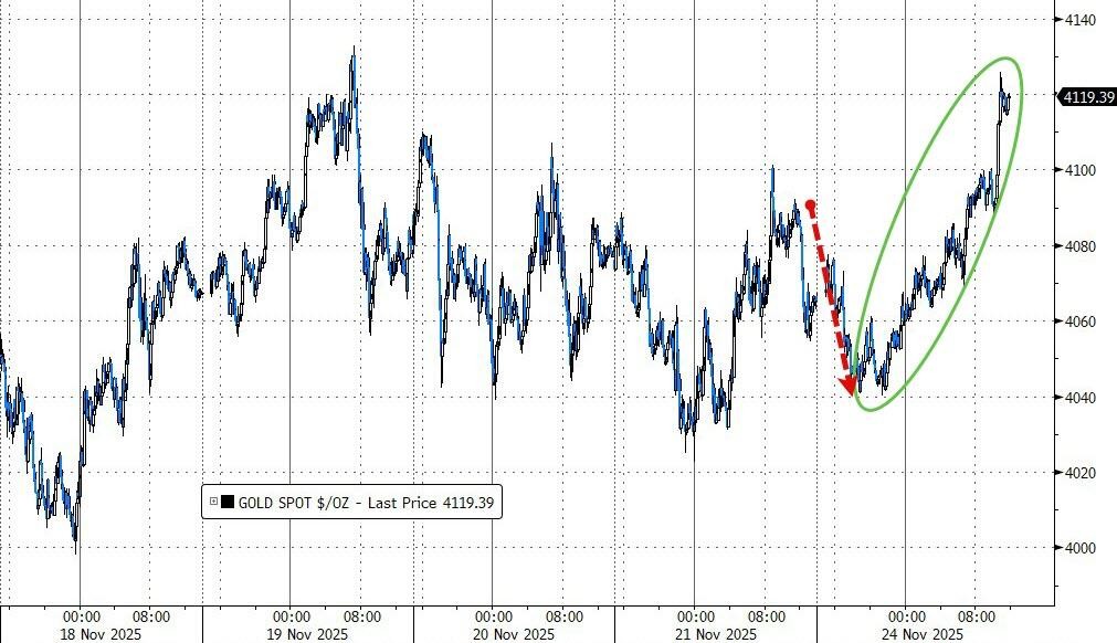 现货黄金走强,站稳 4100 美元关口上方。白银涨近 2.7%。铜期货呈现出 V 形走势。