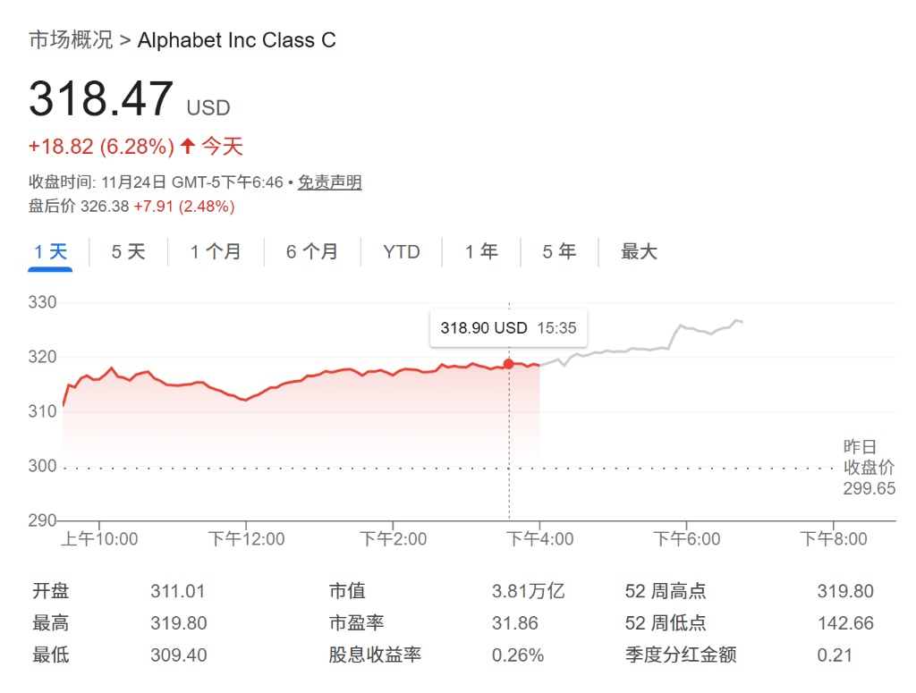 “谷歌链” 正当红!谷歌大涨 6%,博通暴涨 11%