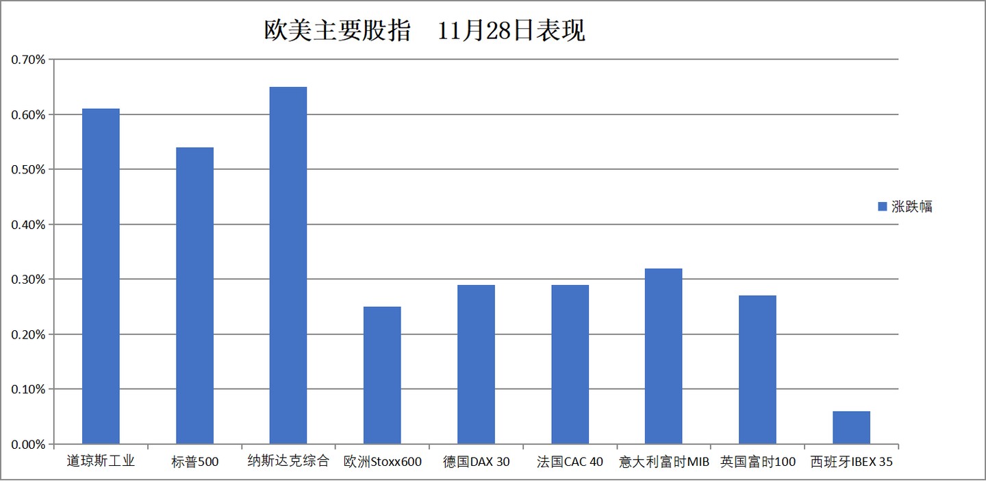 (11 月 28 日 欧美主要股指表现)