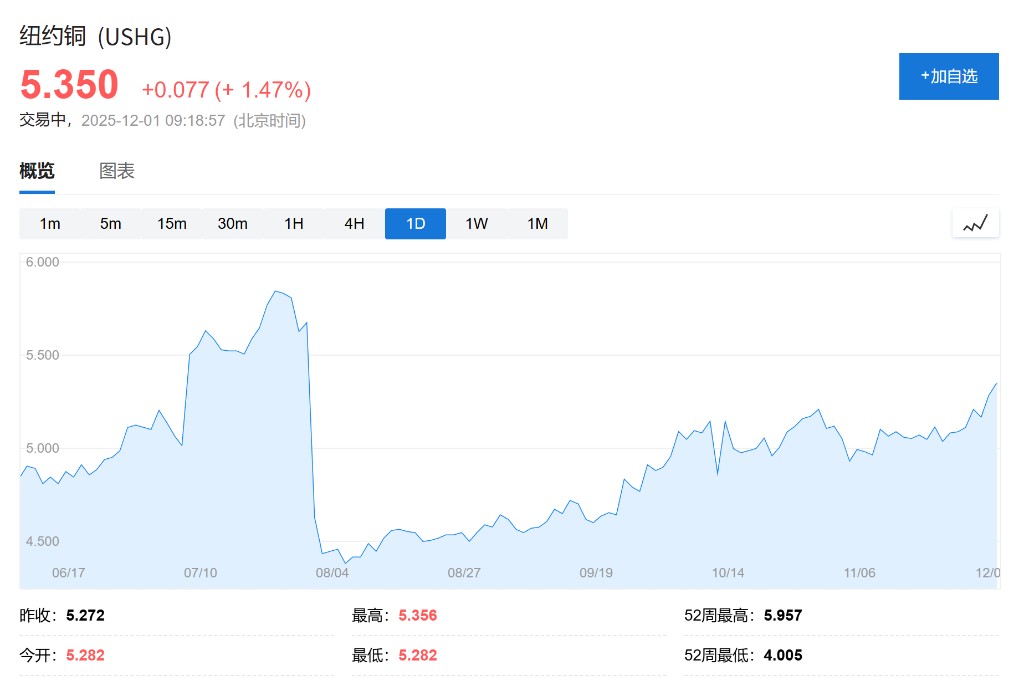 12 月 1 日周一,伦铜创纪录新高。自 8 月底以来,LME 铜价已上涨约 13%,其背后的驱动因素同样指向供应紧张,以及贸易商为锁定溢价而将库存运往美国的套利行为。