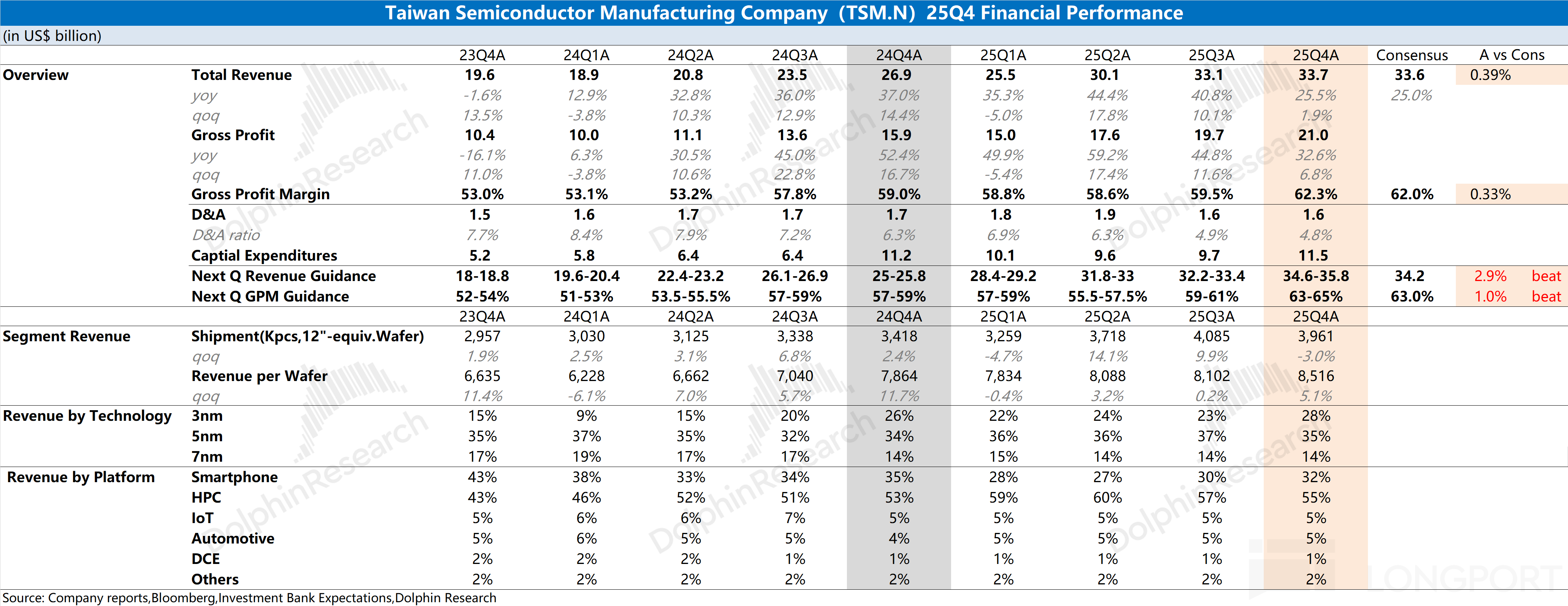 高性能计算业务收入已决定性超越智能手机业务。这标志着永久性转变:台积电不再是周期性手机股,而是长期 AI 基础设施标的。