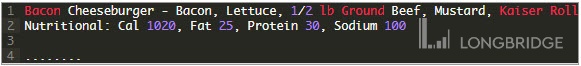 上图的数据是录入的结构化数据,第 9 行之前都是在定义结构:第 5 行规定第一项是商品编号,并定义商品名称,第 7 行定义商品编号下的 4 个成分,第 9 行则规定商品编号下的卡路里,脂肪,蛋白质和钠的量。13-15 行就是方便机器阅读的结构化数据,每一格的数据都已经被清晰定义。