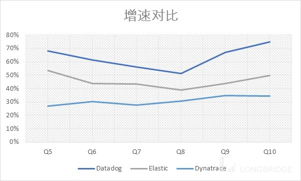 Log Management 产品的独特优势,使得 Datadog 在 2019 年后的收入增速大幅抛离竞争对手(体量都差不多)