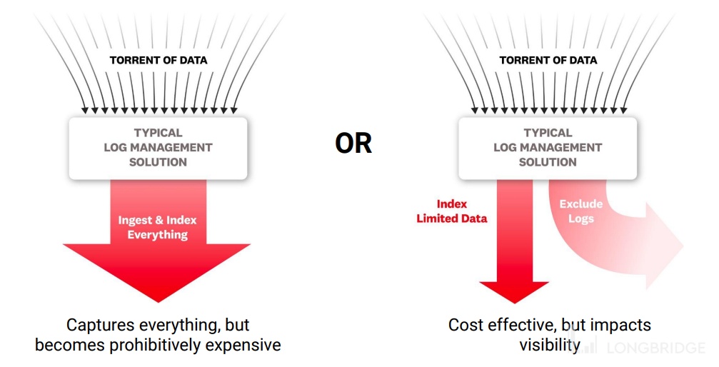Datadog(收购回来的 Logmatic)就是基于 Elastic 的架构的事件管理系统。目前所有抢占市场份额的 Log management 都是基于 Elastic 的而不是 Splunk。那么 Datadog 是如何解决或者减缓数据 ingest(摄取数据)过程中的前端资源消耗问题的呢?Ingest 的成本与性能平衡是所有 Log Management 软件需要完成的任务。后文介绍 Datadog Log Management 产品的部分会讲到。