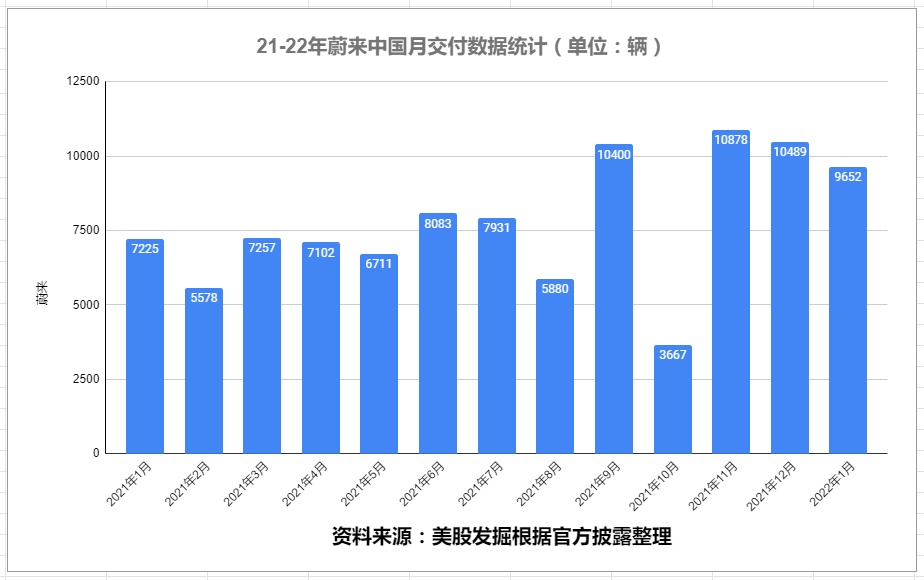 蔚来 1 月交付量为 9652 辆电动汽车,同比增长 33.6%。截至 2022 年 1 月 31 日,ES8、ES6 和 EC6 的累计交付量达到了 156,581 辆。