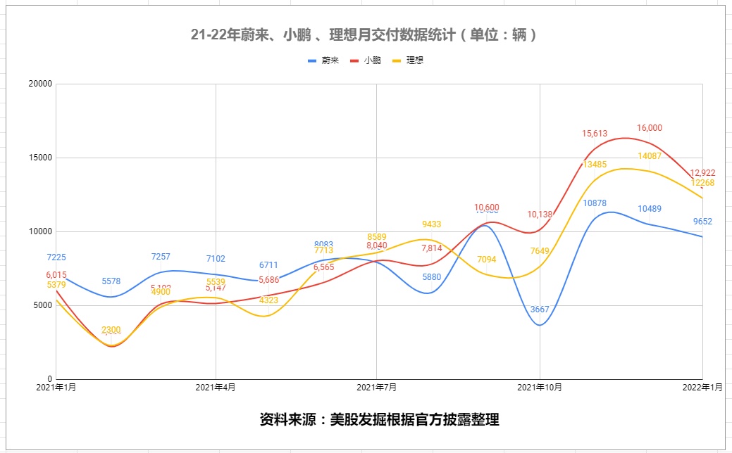2022 年小鹏、理想交付继续高歌猛进,蔚来持续低迷