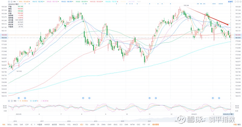 一般情况下,每一次下跌都会对这个底线形成试探和压力,进而削弱它的稳定性,并最终打破它。一旦 180 美元的多头底线被打破,苹果的股价再下降 18-20 美元左右不是什么难事,目前的点位可以说是相当危险。