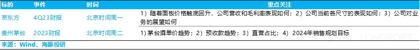 本周海外中国资产财报季也基本结束,只有 A 股上市的资产业绩发布,海豚君覆盖的 A 股公司,本周再发财报的仅有京东方和贵州茅台,具体关注点如下: