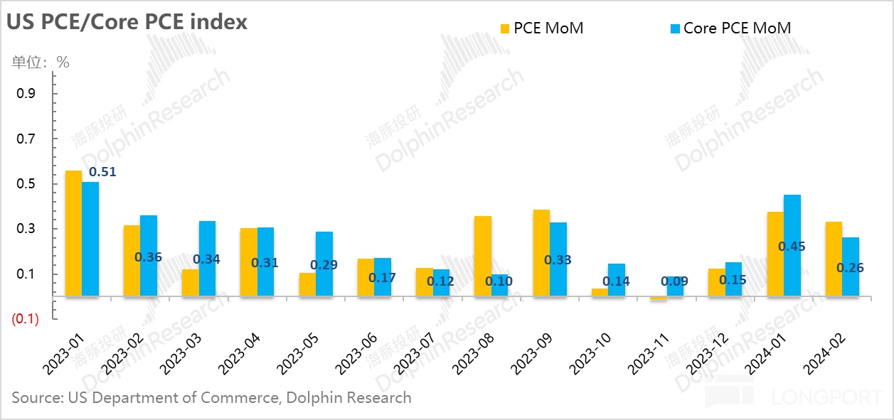 1、2 月份 CPI 物价持续超预期之后,好在 2 月的核心 PCE 物价还算可控。