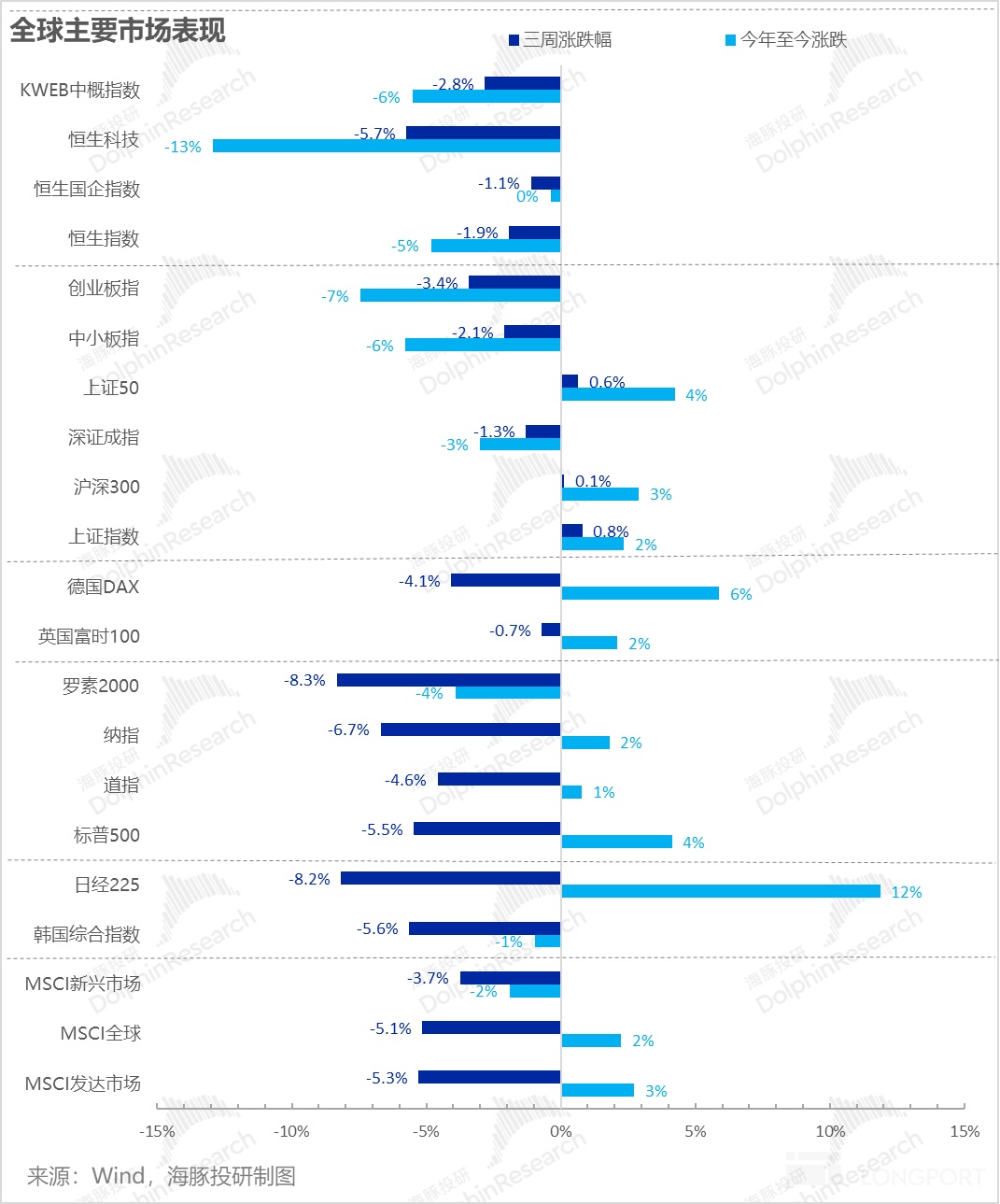 道指和纳指也基本把年初至今的涨幅跌得只剩下 1-2%。全球市场,除了春节前股灾的 A 股,其他平均跌幅基本是在 4.5%-5% 之间。