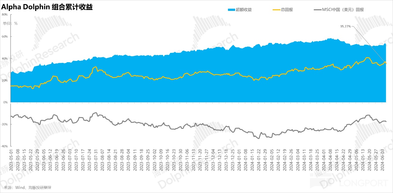 海豚君端午前后未调仓。上周结束,组合收益回升 1.3%,跑输 MSCI 中国(+1.5%)与恒生科技指数(+2.2%),与标普 500(+1.3%)持平,但跑赢沪深 300(-0.2%)。