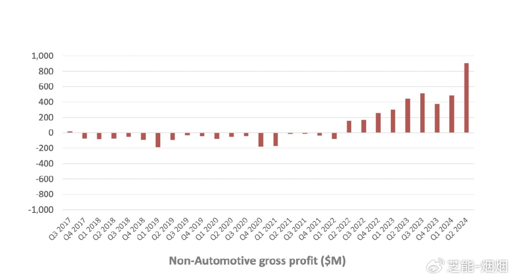 能源业务实现了 160% 的能源安装量增长和 100% 的收入增长,毛利率也达到了 25%,但是收入体量仍然较小,这块本身是特斯拉有地缘的优势,高增长和高毛利率是挺好的。