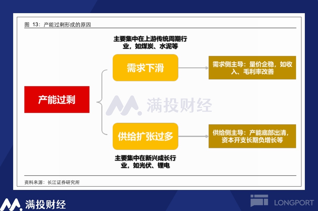 2024 年上半年,中国的工业产能利用率为 74.9%,尽管较一季度有所回升,但对比过往来看是一直处于偏低水平的。但拆分来看,产能利用率的下滑原因是复杂的,新兴产业源于产能扩张过快导致的供给侧结构调整,比如光伏和锂电池行业,而传统行业则存在市场需求不足的问题,例如地产以及与之相关的水泥、建材行业。