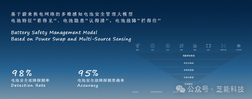 蔚来的电池安全管理模型通过多源感知,能够实现 98% 的电池安全故障探测率和 95% 的准确率,这为新能源汽车的安全性提供了坚实保障。