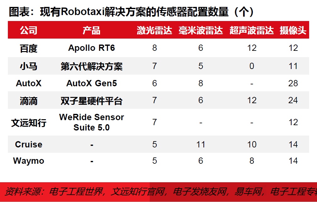 从目前的结果来看,根据萝卜快报最新公布的 RT6 车辆成本,RT6 车辆成本仅 20.5 万元(不含智驾套件),假设包含搭载的智驾套件后,整车成本约 25 万,相比 RT5 48 万元的成本下降了 48%,预计 2025 年开始大规模运营,这也侧面证明了多传感器方案也能达到大幅降本,从而跑通 UE 模型。