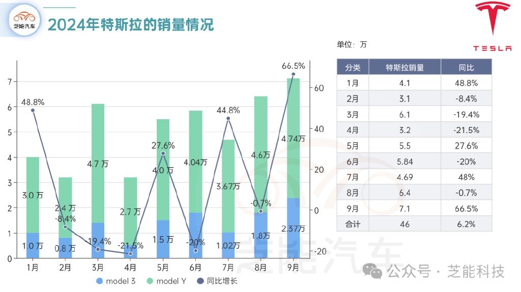 特斯拉 9 月销量为 7.1 万台,同比增长 66.5%,这个和去年的基数有很大的关系。
